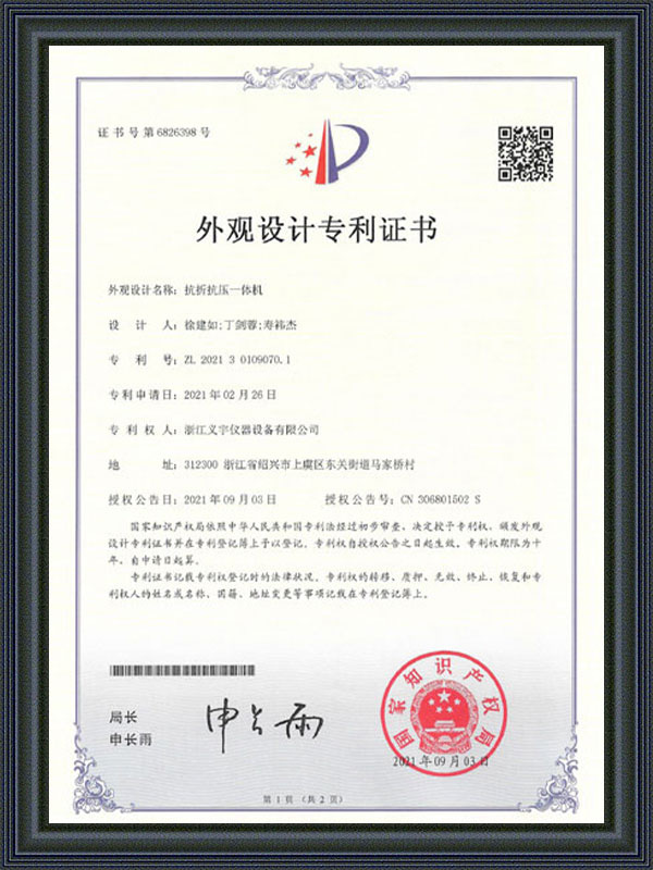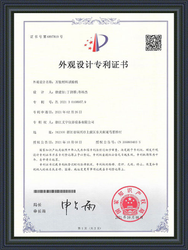 Certificat de brevet de design al aspectului